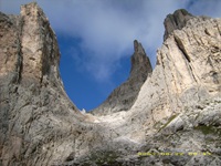 Bekannter Dolomitenklassiker mit logischer Routenführung durch eine steile Wand. 5+/E4-, eine Seillänge 5+, eine Seillänge 5, sonst überwiegend 4+ bis 4-. An den schwierigeren Passagen ausreichend Normalhaken, sonst vielfach selbst abzusichern. Auch die Stände sind teilweise etwas verbesserungsbedürftig.