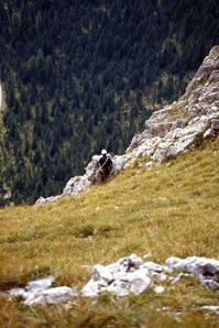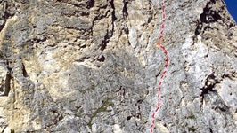 Sellagruppe. Schwierigkeit: III und IV. Schlüsselstelle 4+. Höhenunterschied: 300 m. Kletterstrecke: 325 m. Seillängen: 10. Stunden: 3. Fels: ausgezeichnet . Ausrüstung: NAA.