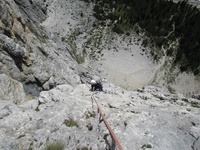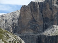 Sellagruppe. Schwierigkeit: V+, zwei Stellen VI. Höhenunterschied: 250 m. Kletterstrecke: 265 m. Seillängen: 8. Stunden: 3–4 . Fels: ausgezeichnet . Ausrüstung: NAA + einen ganzen Satz Stopper + Friend 1/2, 2, 3 + 9 Express- Schlingen Wegbeschreibung