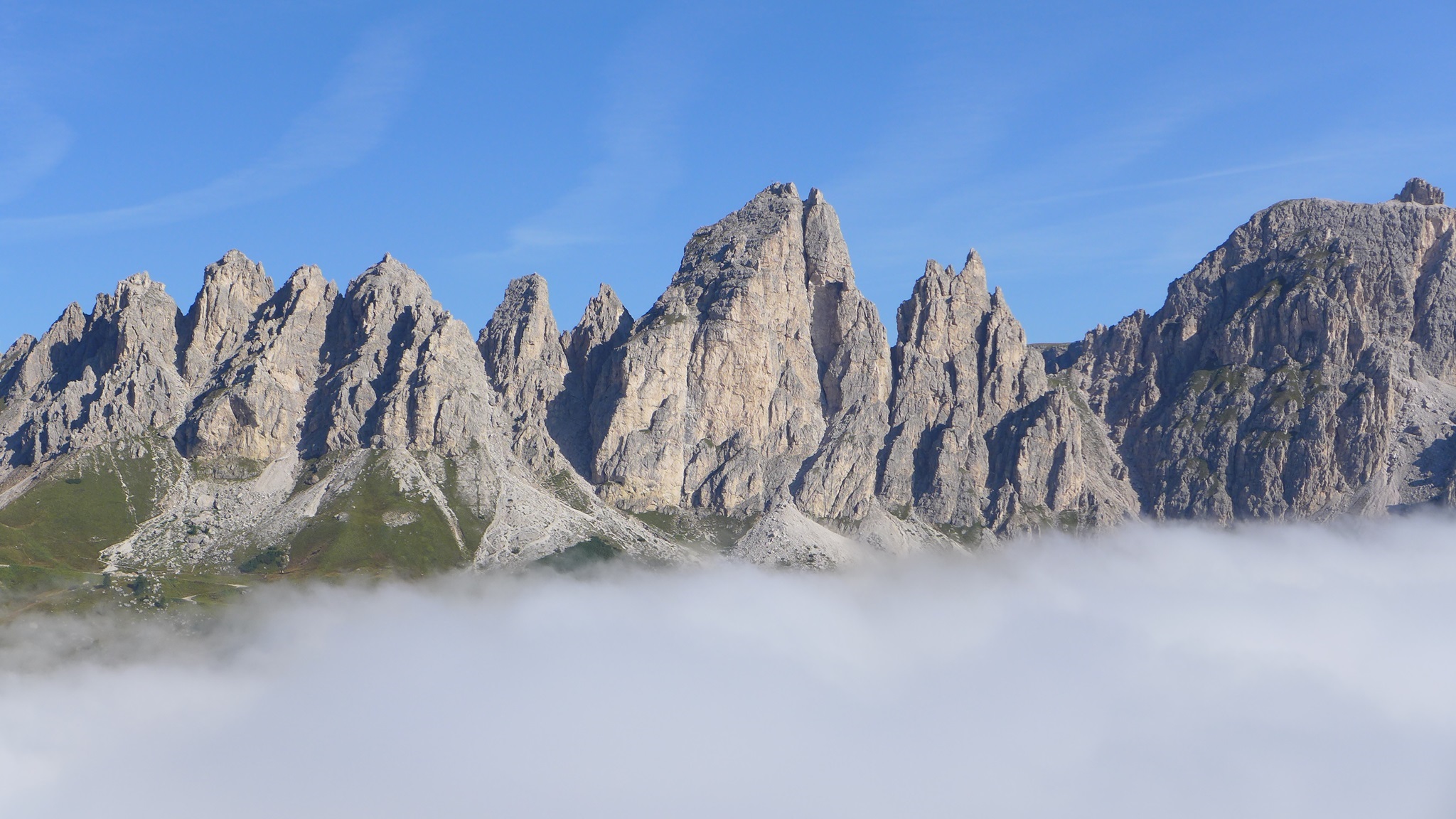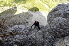 Sellagruppe. Schwierigkeit: V+, mehrere Stellen VI.